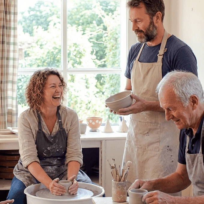 De keramieklessen op Boerderij Oud Woelwijck bieden echter meer dan alleen werken met klei. Het is een warme, sociaal betrokken en gezellige ervaring waar iedereen welkom is. Je wordt onderdeel van een creatieve groep die elkaar motiveert en ondersteunt. Samen creëren we een omgeving waarin je kunt groeien en je liefde voor keramiek kunt delen.